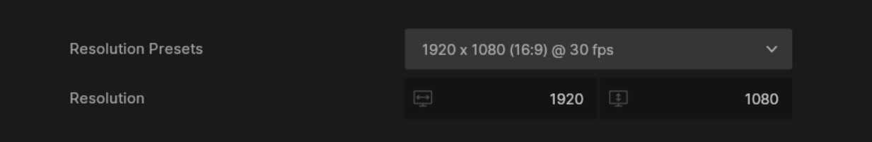 The “Resolution” property is where you set the desired width and height of your render. You can add this manually or select one of the presets for the “Resolution Presets” dropdown.