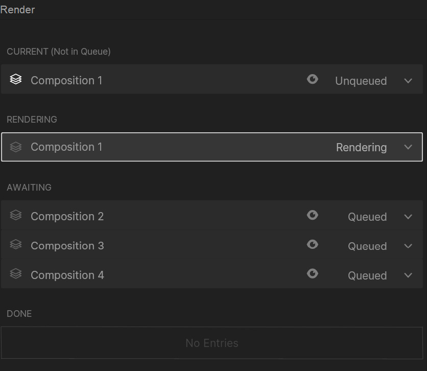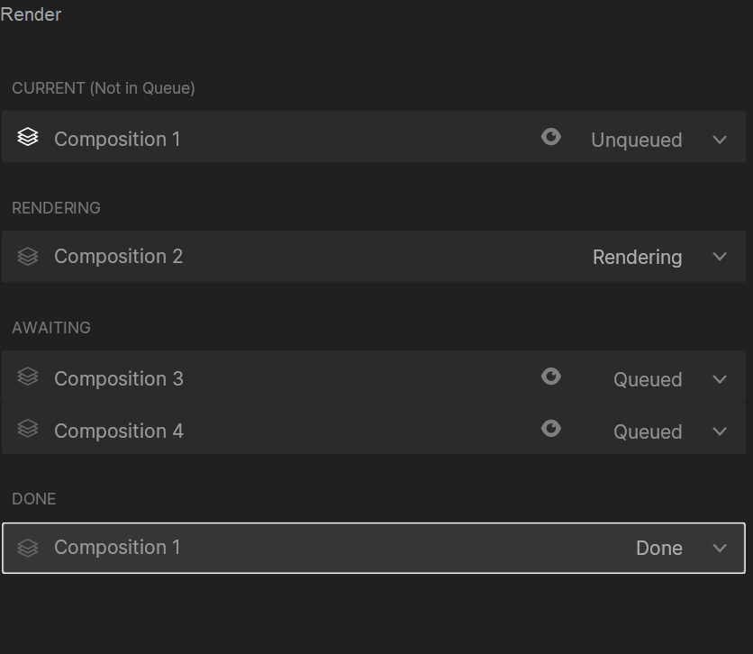 Render Queue items are split into 3 categories: