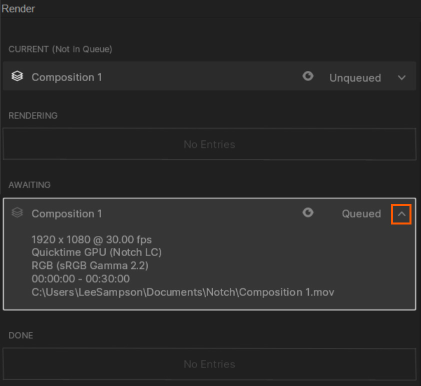 Once a composition has been added to the Render Queue, it will appear in the “Awaiting” queue.