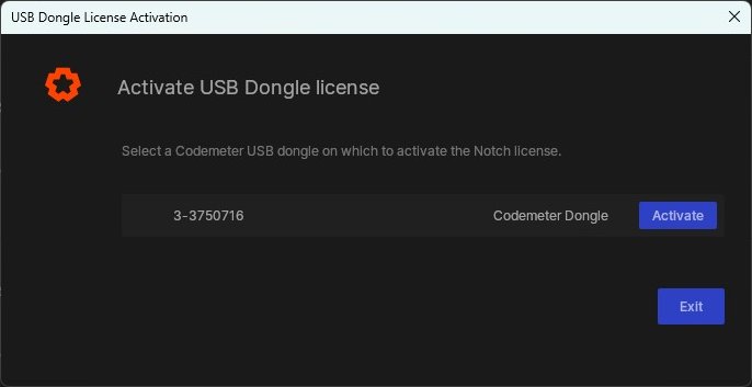- Each Codemeter USB dongle has a unique serial number. You can find this serial number laser etched into the USB plug or by looking in Notch Launcher.
